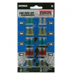 Pojistky blistr MINI 10ks (1x5A, 1x7, 5A, 2x10A, 2x15A, 2x20A, 1x25A, 1x30A) Sada 10 kusů nožových