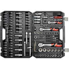 Gola sada 1/2", 3/8", 1/4" obsahuje 128ks: nástavců, prodlužovacích nástavců, ráčny s plastovou ruko