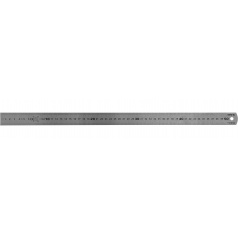 Pružné pravítko s přesností třídy II. Vyrobeno z nerezové oceli. Na obou okrajích je milimetrová stu