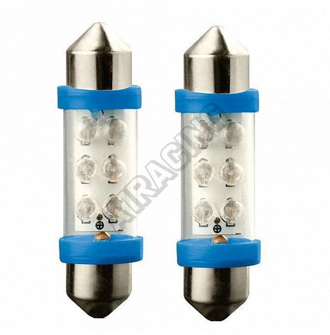 6 LED žárovky sulfit modré 39 mm 2 ks