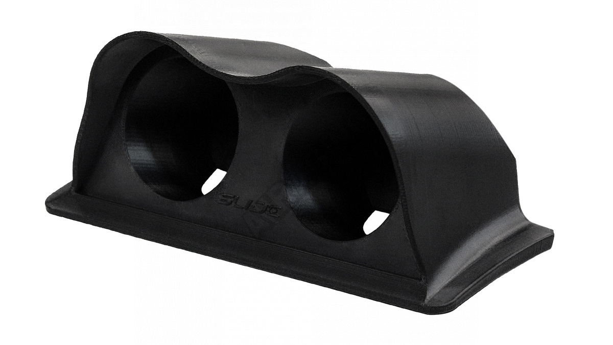 Adaptér firmy Slide na 2 budíky 60mm, montovaný na palubní desku.Má vzadu otvor pro vedení kabelůVyr