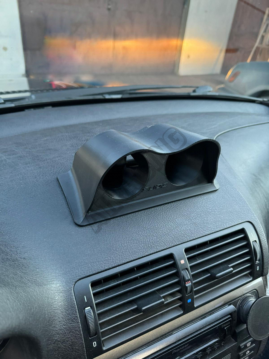 Adaptér firmy Slide na 2 budíky 60mm, montovaný na palubní desku.Vyrobeno technologií FDM.Vysoká kva