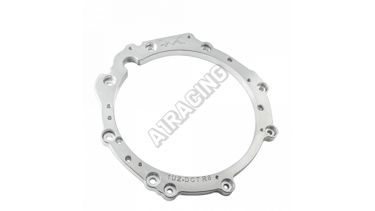 Aluminiowy adapter umożliwiający połączenie (swap / konwersję ) silnika Toyota Lexus V8 UZ 1UZ 3UZ z automatyczną dwusprzęgłową skrzynią biegów GETRAG GS7D36SG DCT DKG z BMW M2 M3 M4 - wersja R6, oraz manualną 6-biegową skrzynią biegów BMW ZF GS6-53BZ z N54.