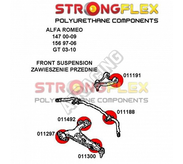 Alfa Romeo 147 StrongFlex (tvrdost 80ShA) kompletní sestava silentbloků na celé auto obsahuje :