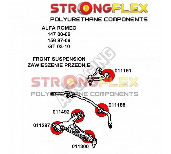Alfa Romeo 147 StrongFlex sestava silentbloků jen pro přední nápravu 12 ks obsahuje: