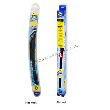 Stěrače FLAT SET (sada 2 ks na celé auto). Vysoce kvalitní pružný člen plochého stěrače zajišťuje stejnoměrný tlak grafitového břitu v celé jeho délce, což zamezuje rozmazávání nečistot a vytváření pruhů.