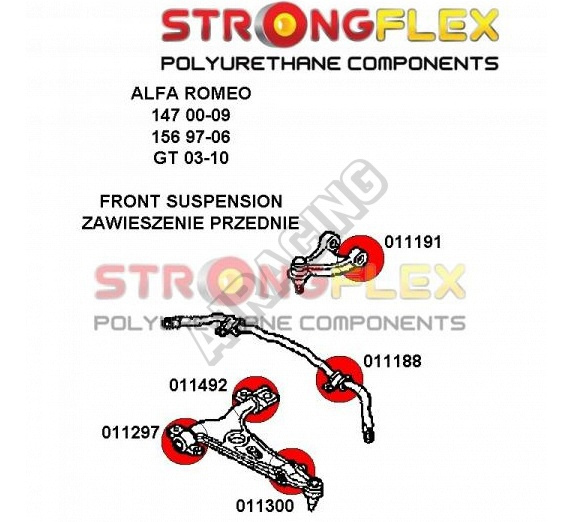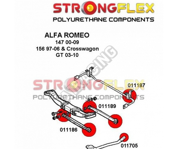 Alfa Romeo GT StrongFlex Sport (tvrdost 90ShA) kompletní sestava silentbloků na celé auto obsahuje :