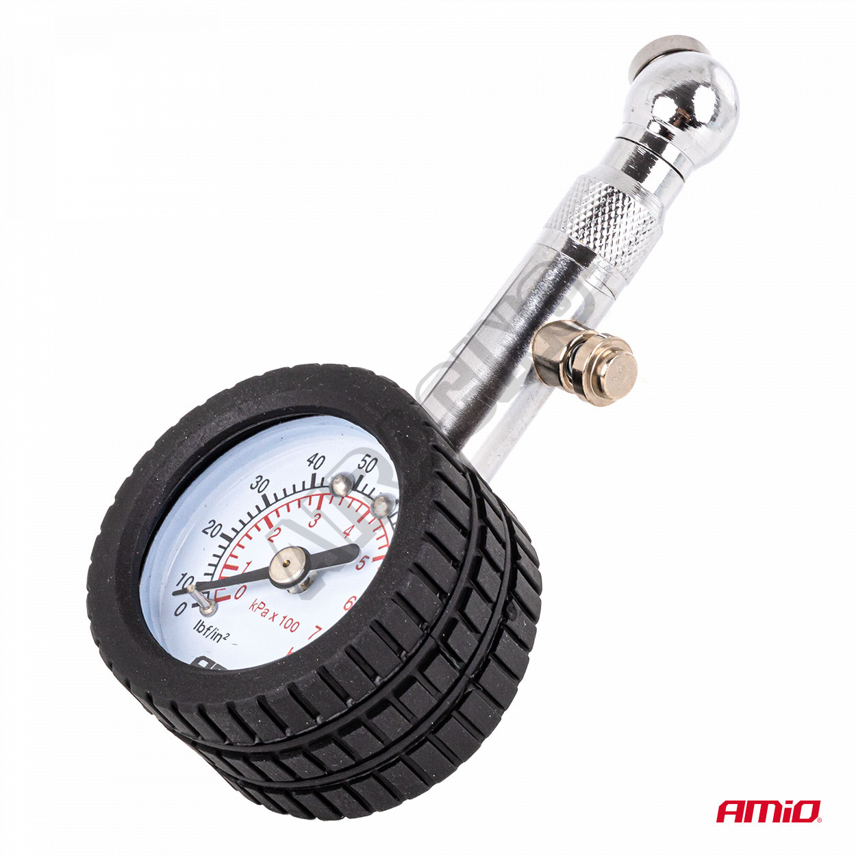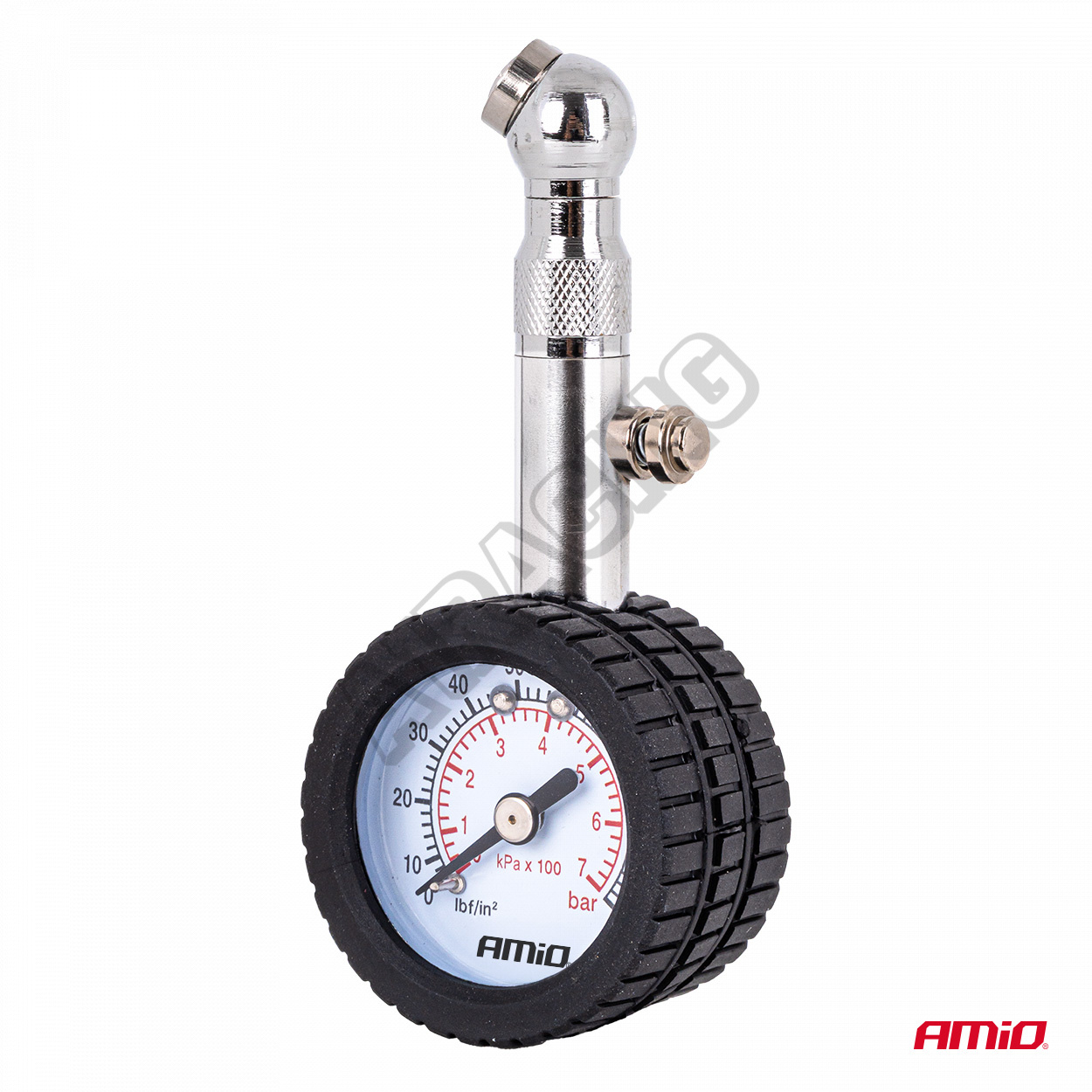 Mechanický tlakoměr s otočnou hlavicí a resetovacím ventilem je kompaktní a funkční nástroj pro kontrolu tlaku v pneumatikách. Měřicí rozsah do 7 bar umožňuje přesné měření v osobních a lehkých užitkových vozidlech. Pohyblivá hlava usnadňuje přístup k ventilům v obtížně nastavitelných polohách a vypouštěcí ventil umožňuje rychlé snížení tlaku bez sejmutí přístroje. Analogová stupnice zaručuje spolehlivost a nepotřebuje napájení.