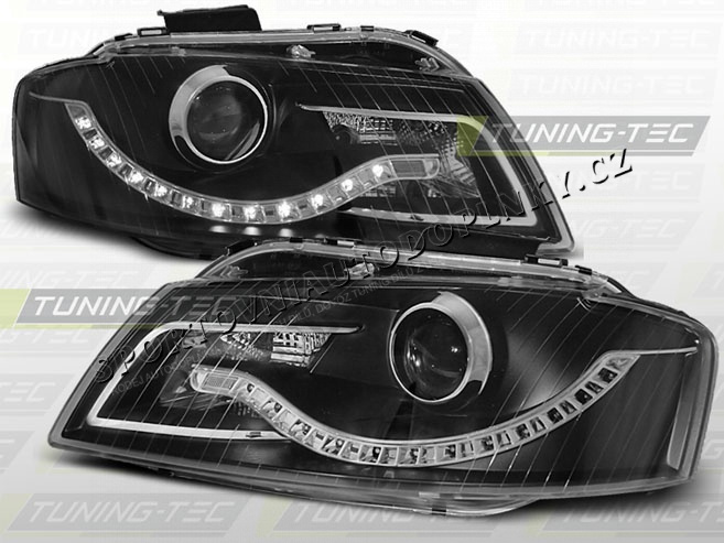 AUDI A3 (8P) 2003-08 PŘEDNÍ ČÍRÁ SVĚTLA DAYLIGHT LED BLACK