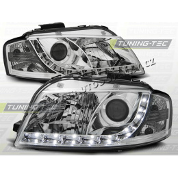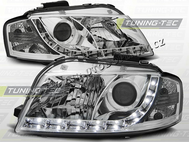 AUDI A3 (8P) 2003-08 PŘEDNÍ ČÍRÁ SVĚTLA DAYLIGHT LED CHROME