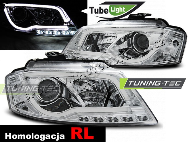 Audi A3 8P 2008-12 přední čirá světla Led Tube Lights DRL chrome