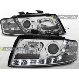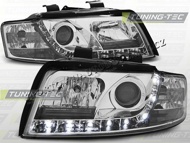 AUDI A4 (B6) 2000-04 PŘEDNÍ ČÍRÁ SVĚTLA DAYLIGHT LED CHROME