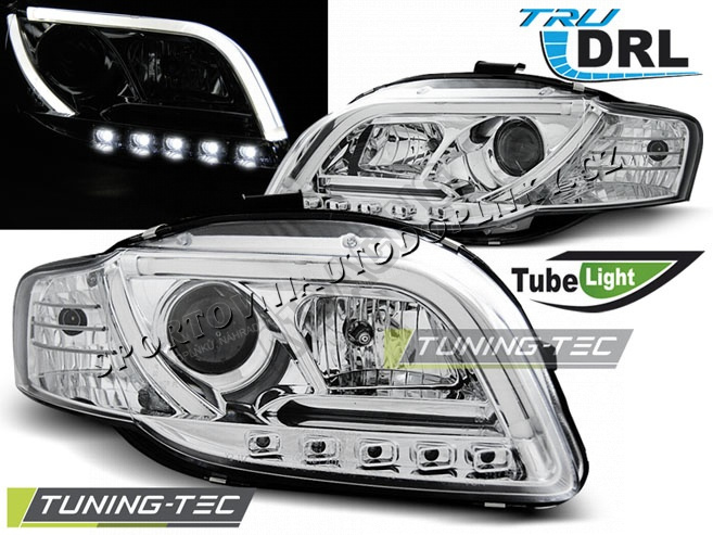 Audi A4 B7 11.2004-03.2008 přední čirá světla Led Tube Lights TRU DRL chrome