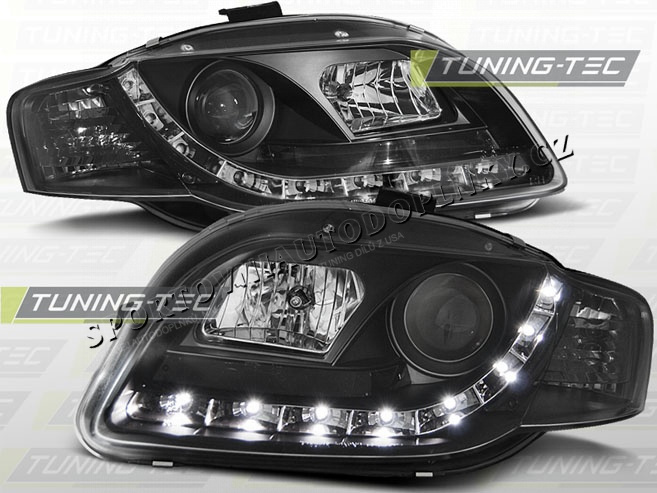 AUDI A4 (B7) 2004-08 PŘEDNÍ ČÍRÁ SVĚTLA DAYLIGHT LED BLACK
