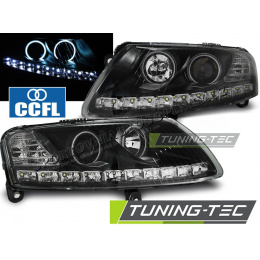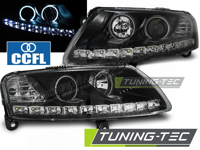 Audi A6 C6 04.2004-08 přední čirá světla Angel Eyes LED black