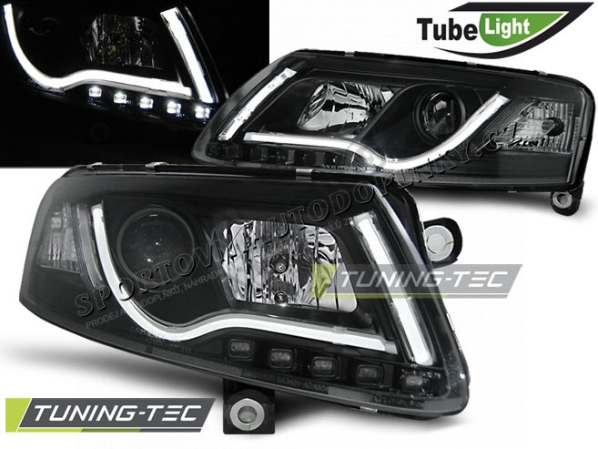 AUDI A6 C6 04.2004-2008 PŘEDNÍ ČÍRÁ SVĚTLA LED TUBE LIGHTS BLACK10 667 Kč