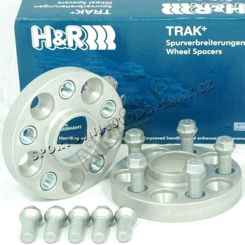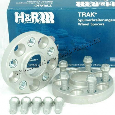 Sada podložek H&R k rozšíření nápravy vozu o 50mm pro vůz Audi A7 Typ 4G/4G1 obsahující dvě podložky o šířce 25mm a sadu šroubů pro uchycení podložek na náboj. Kolo se šroubuje do podložky pomocí stávajících originálních šroubů.