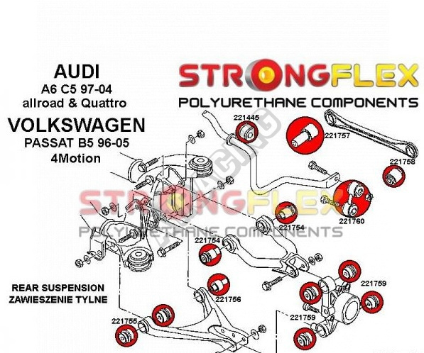 Audi Allroad 1997-03 StrongFlex sestava silentbloků jen pro zadní nápravu 19 ks