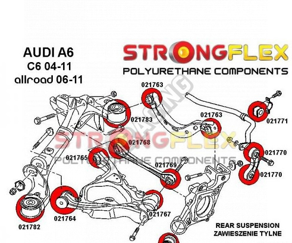 Audi Allroad 2004-11 StrongFlex sestava silentbloků jen pro zadní nápravu 20/22 ks obsahuje: