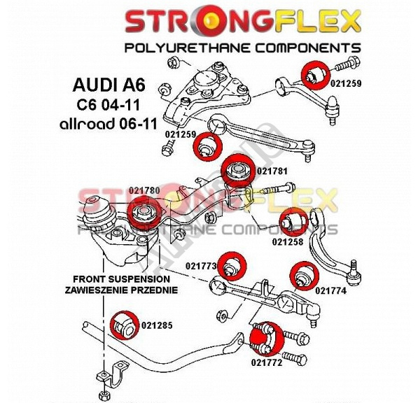 Audi Allroad 2004-11 StrongFlex Sport sestava silentbloků jen pro přední nápravu 16 ks obsahuje: