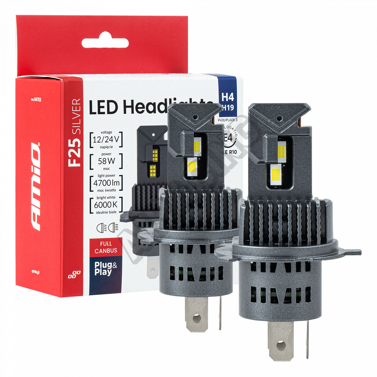 Automobilové LED žárovky F25 SILVER FULL CANBUS 58W H4 H19 12V 24V AMIO-04703