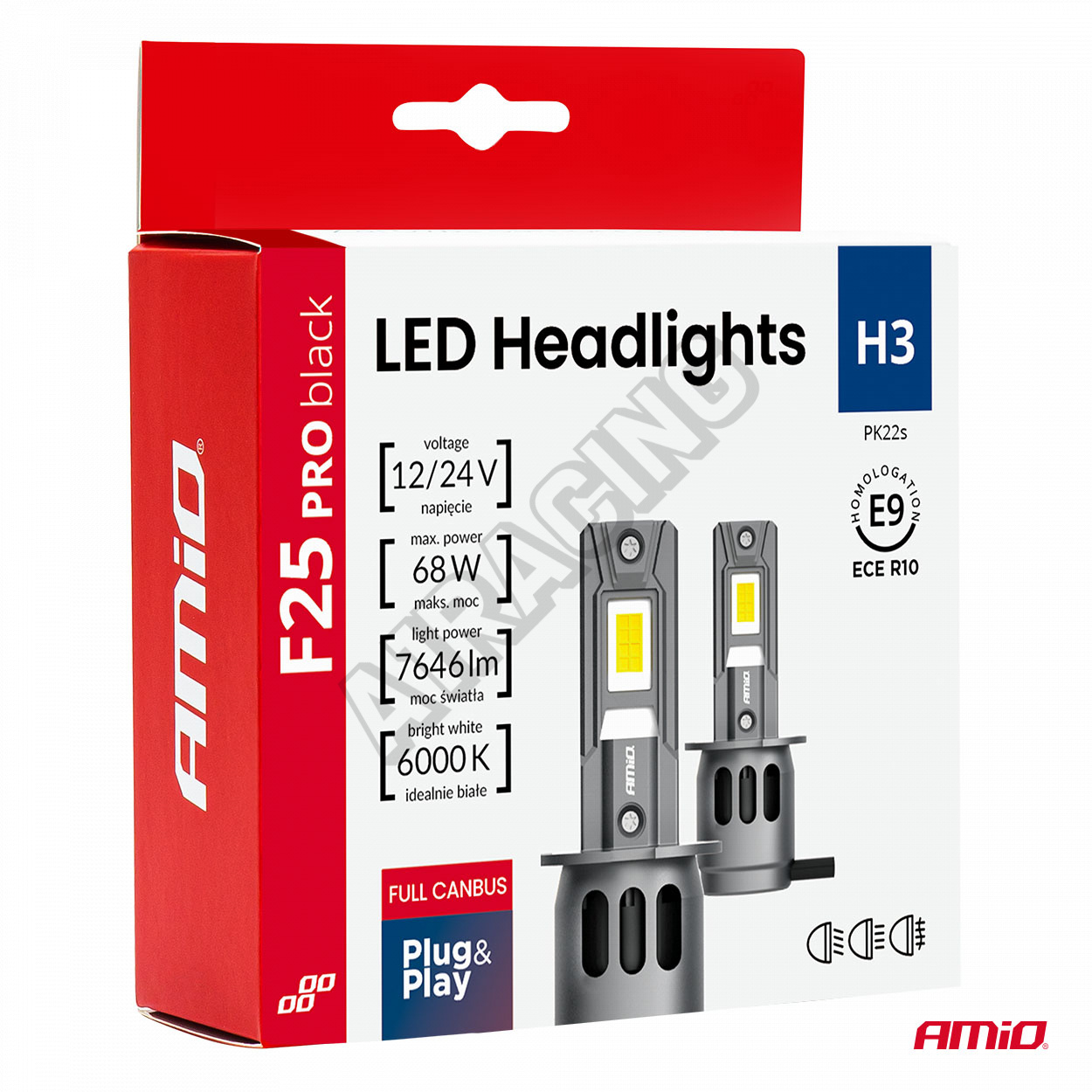 Automobilové LED žárovky série F25 PRO BLACK FULL CANBUS H3 68W 12V 24V