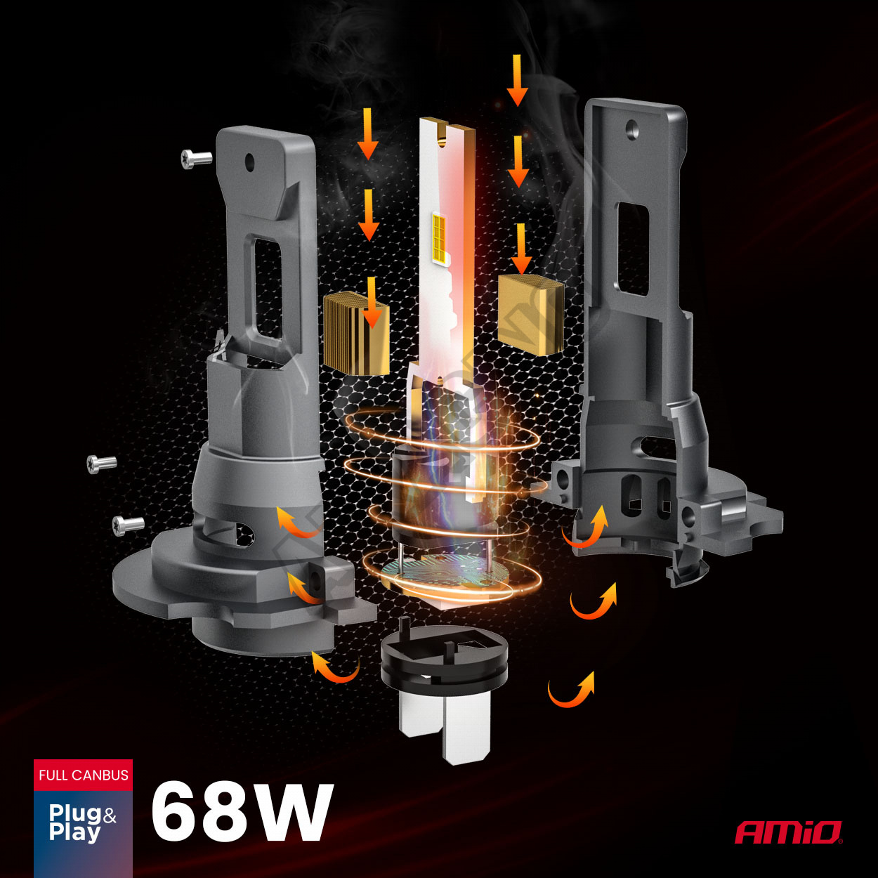 Automobilové LED žárovky série F25 PRO BLACK FULL CANBUS H7 68W 12V 24V AMIO-04720