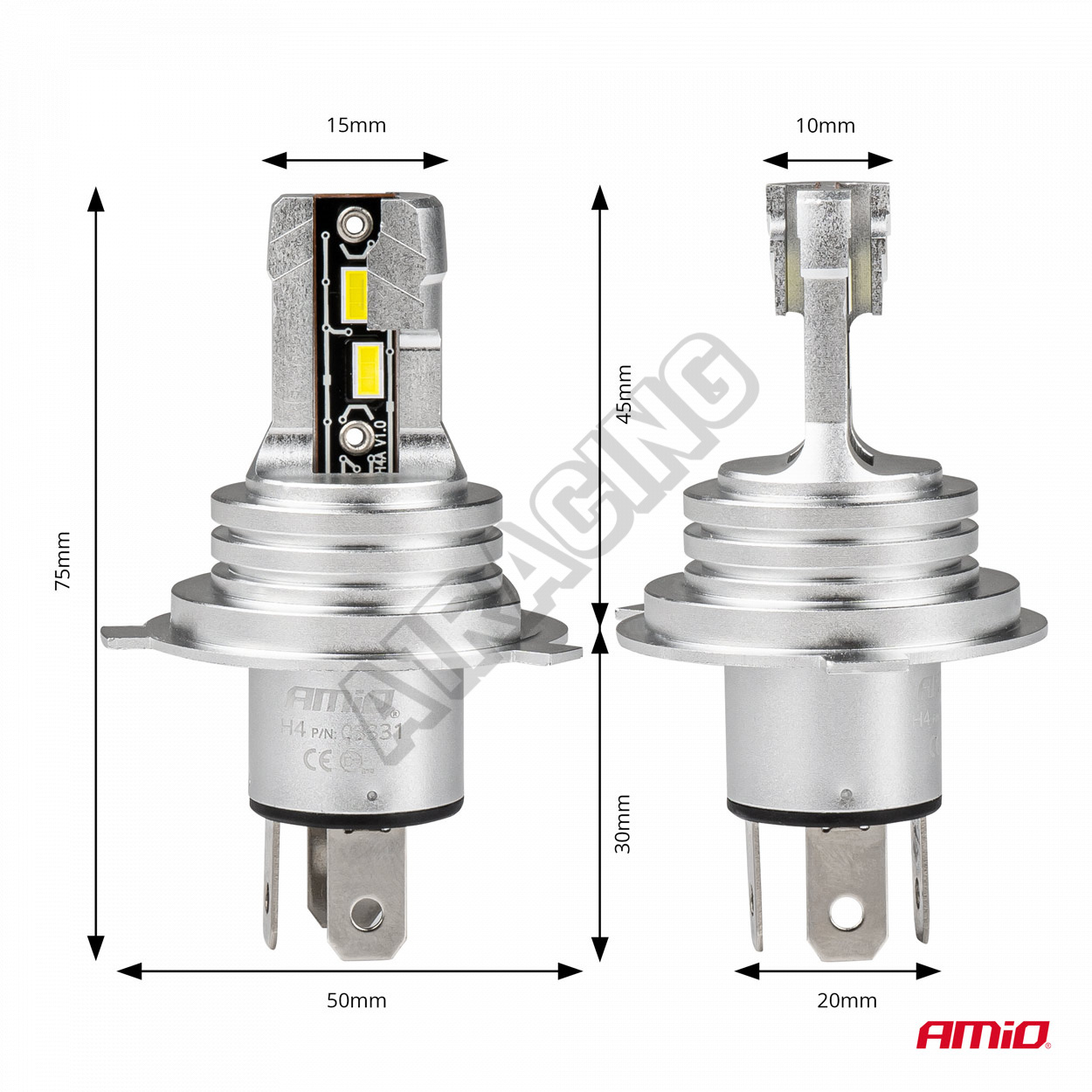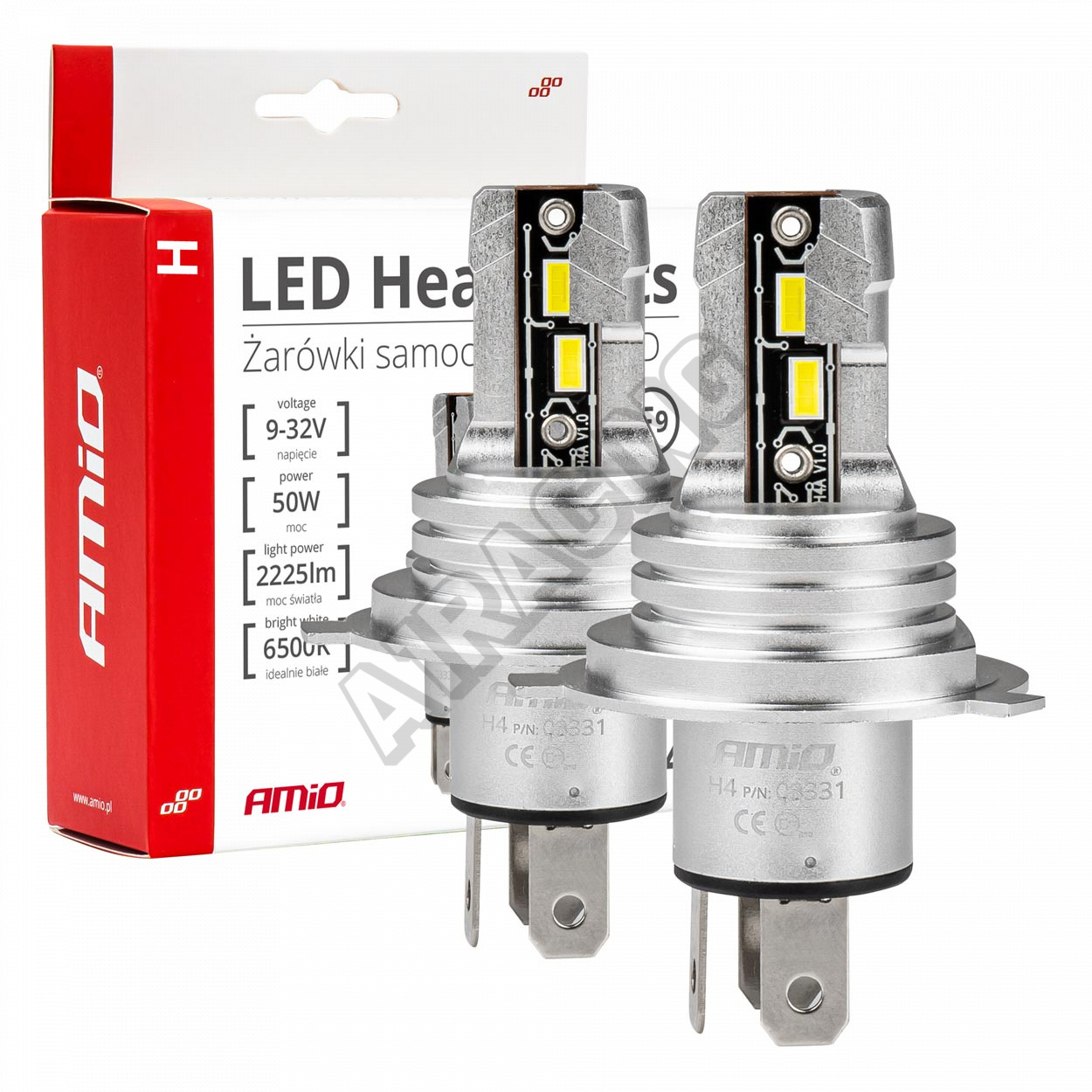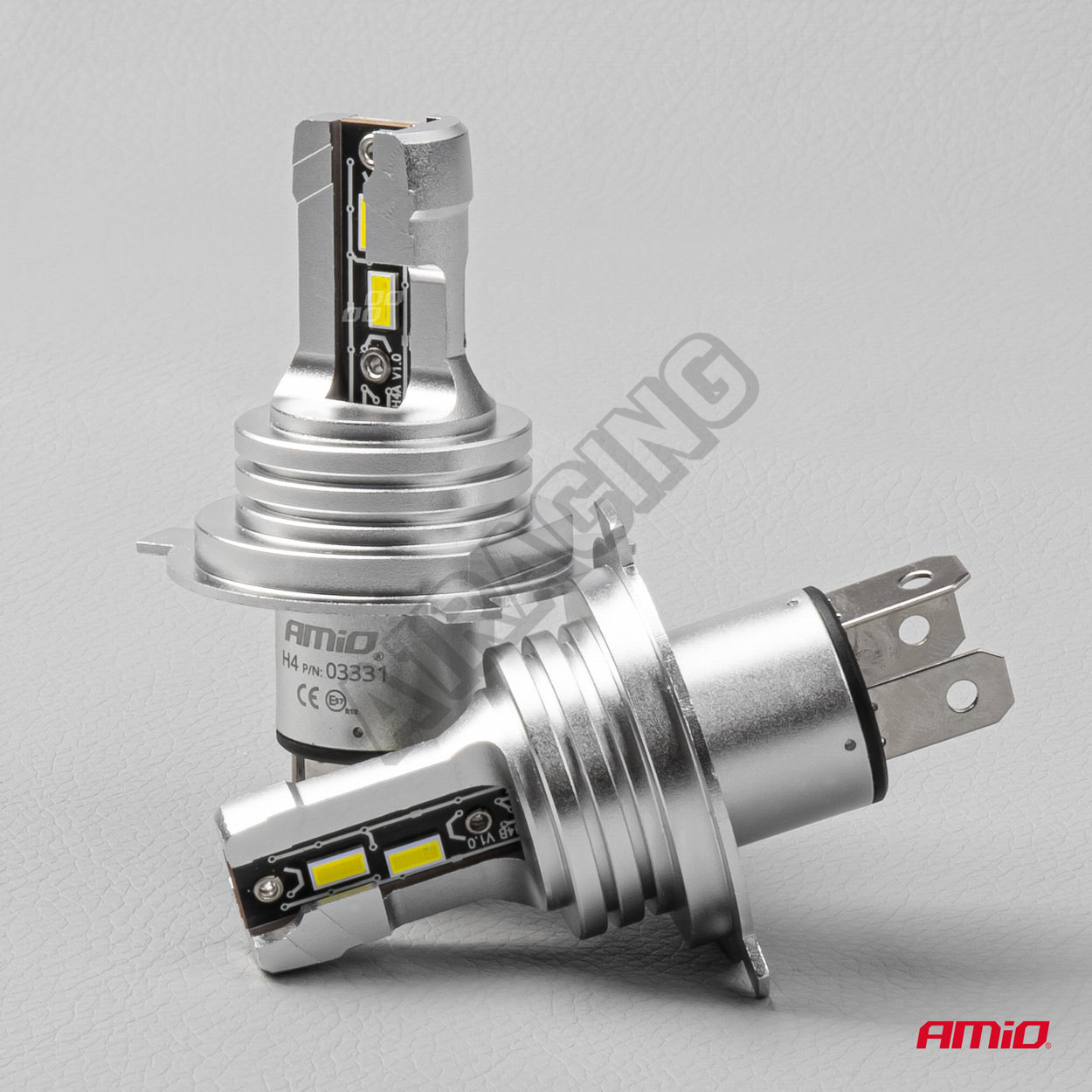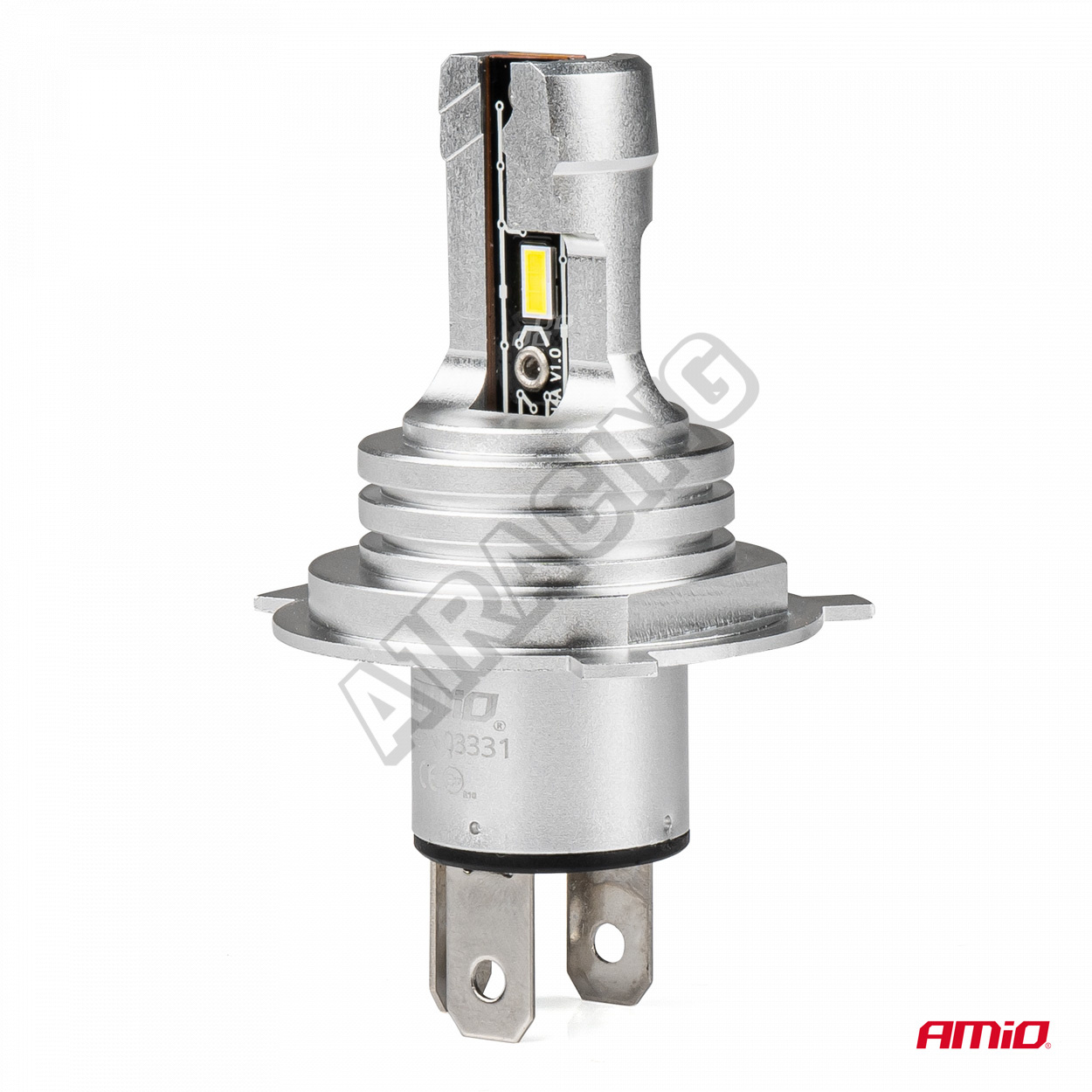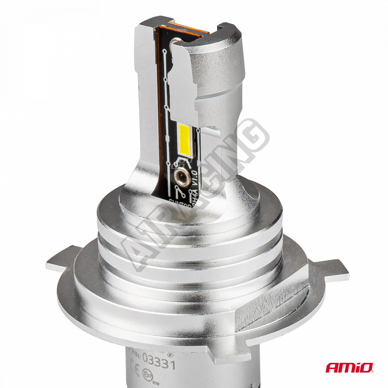 LED žárovky H4 /H19 AMiO série H se vyznačují velmi vysokou kvalitou provedení. Navrhovaný produkt vyzařuje jasnější a koncentrovanější světlo, což umožňuje lepší viditelnost cesty za podmínek omezeného osvětlení, jako je soumrak, mlha nebo déšť. Světelné zdroje vyrobené v technologii CSP jsou efektivnější v procesu přeměny elektrické energie na viditelné světlo ve srovnání s tradičními halogenovými žárovkami. LED žárovky jsou odolnější vůči otřesům a vibracím, což znamená, že mají delší životnost než halogenové žárovky.