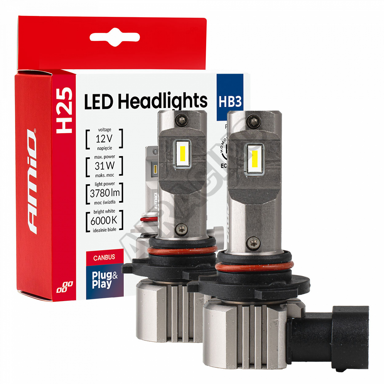 Automobilové LED žárovky H25 Series HB3 CANBUS 12V 31W jsou moderním zdrojem světla s vysokou světelnou účinností 3780 lm a barvou 6000K (studená bílá).