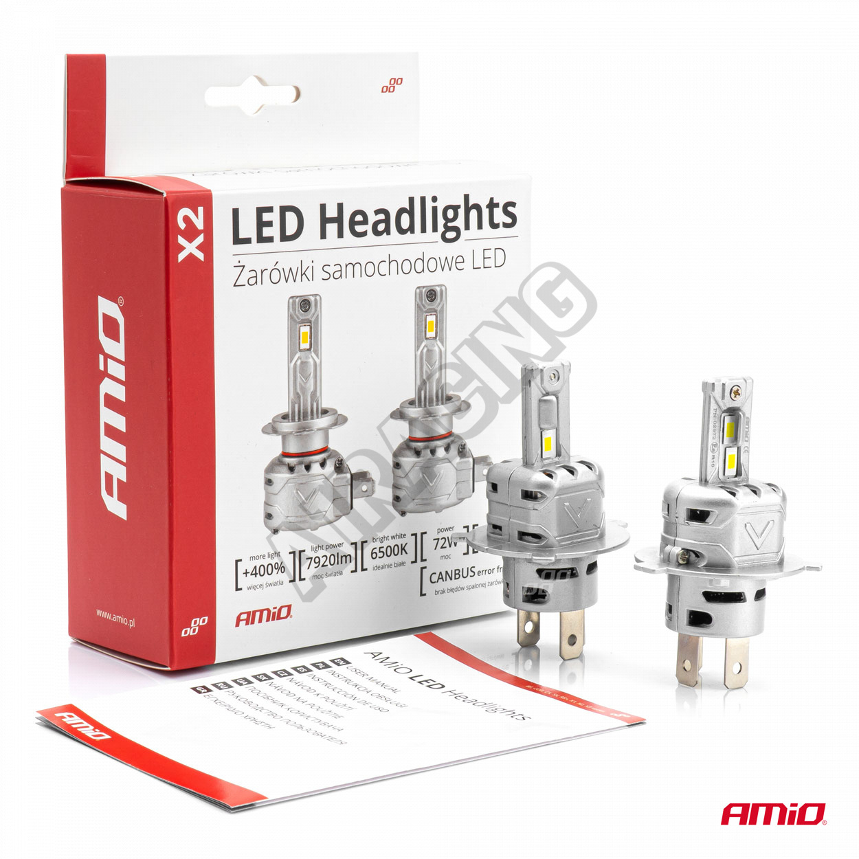 Žárovky LED H4/H19 AMiO série X2 se vyznačují velmi vysokou kvalitou provedení. Navrhovaná sada vyzařuje jasnější a koncentrovanější světlo, což umožňuje lepší viditelnost cesty za podmínek omezeného osvětlení, jako je soumrak, mlha nebo déšť. Světelné zdroje vyrobené v technologii CSP jsou efektivnější v procesu přeměny elektrické energie na viditelné světlo ve srovnání s tradičními halogenovými žárovkami. LED žárovky jsou odolnější vůči otřesům a vibracím, což znamená, že mají delší životnost než halogenové žárovky.
