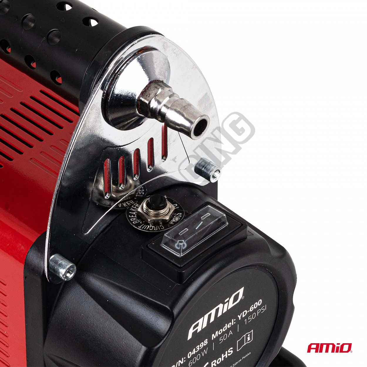 Zařízení pracuje při jmenovitém proudu 50A, dosahuje maximálního tlaku 10 bar. Kovový válec o průměru 60 mm zajišťuje vysokou odolnost proti opotřebení a efektivní odvod tepla, což prodlužuje životnost kompresoru a umožňuje dlouhodobý provoz bez přehřívání.