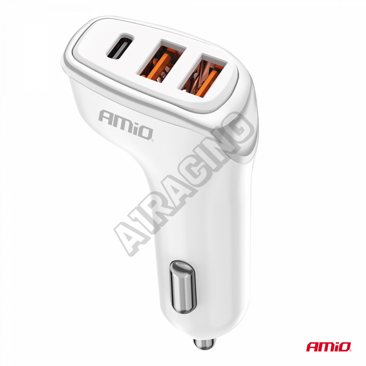 Autonabíječka 2x USB-C + USB-A 12V 24V 95W AMIO-04372