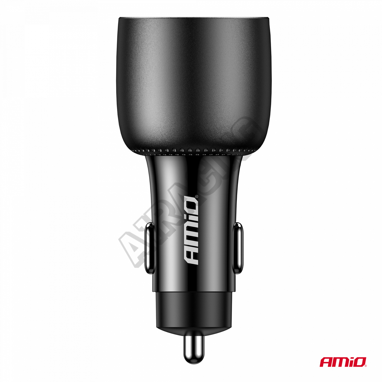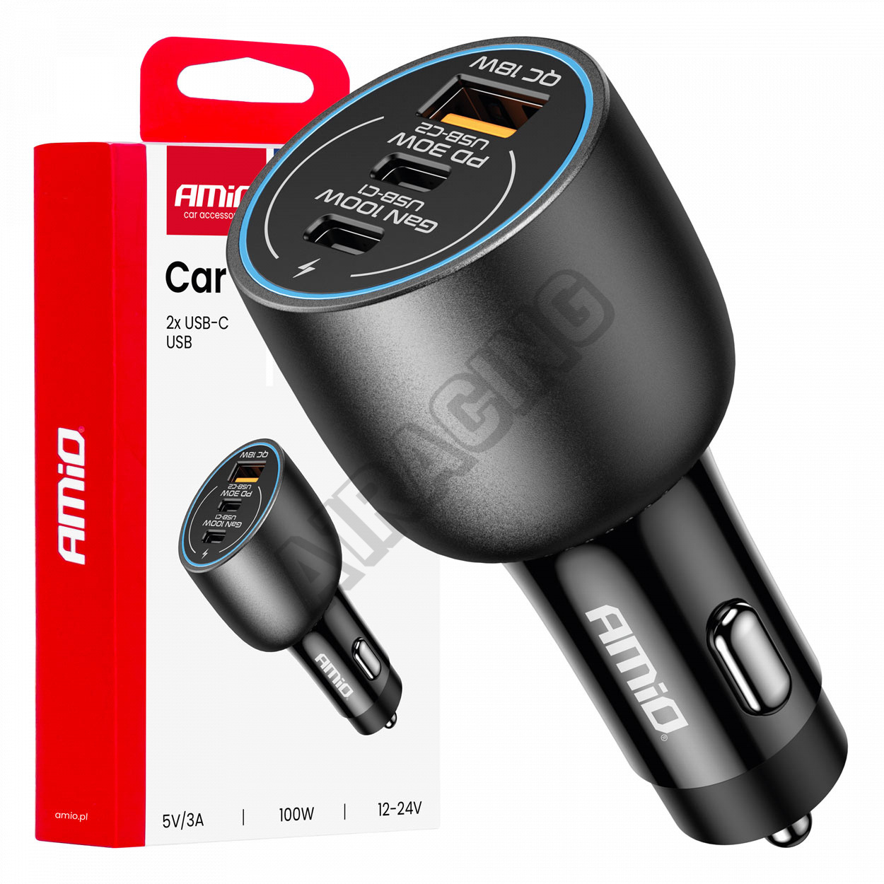 Autonabíječka 2x USB-C + USB-A 12V 24V 100W AMIO-04371