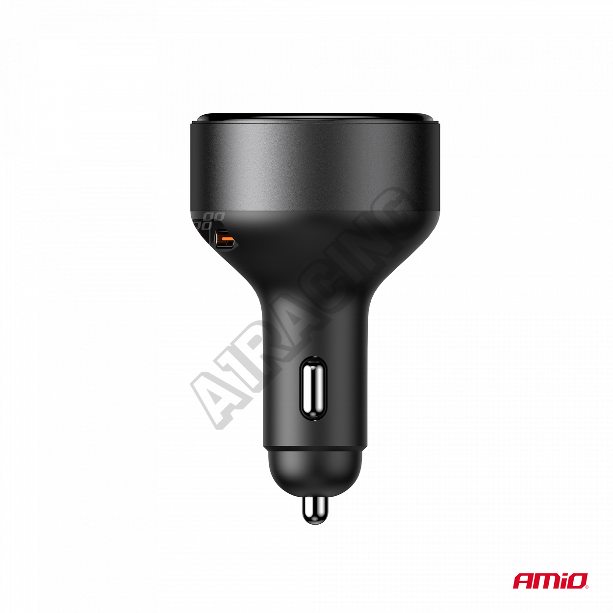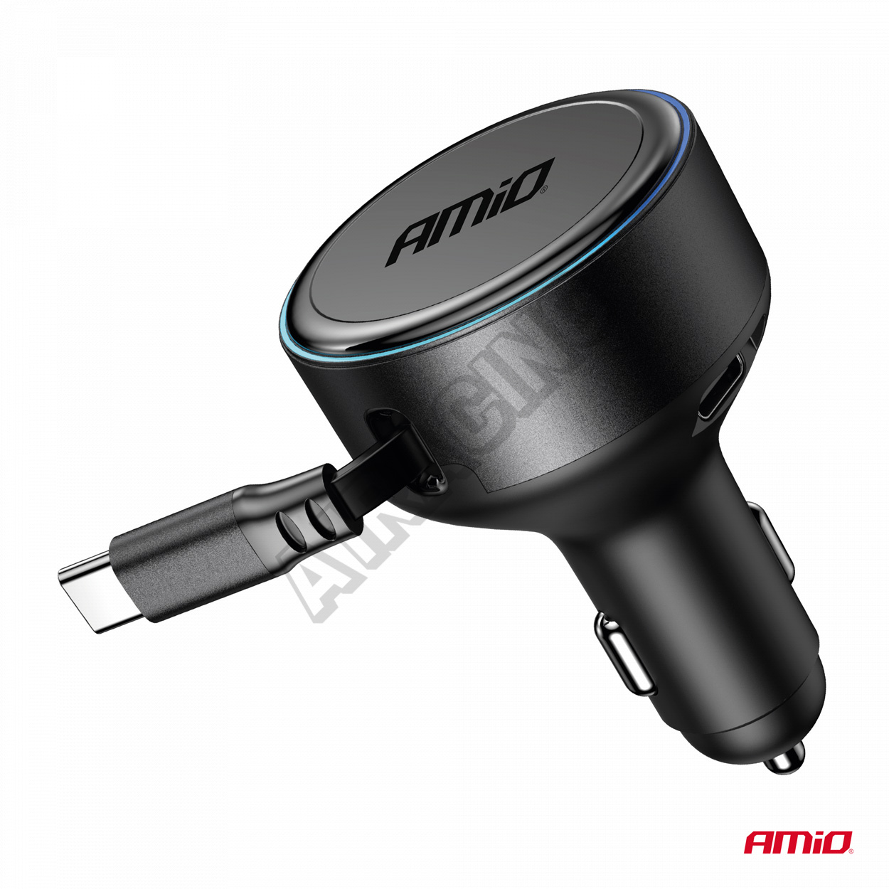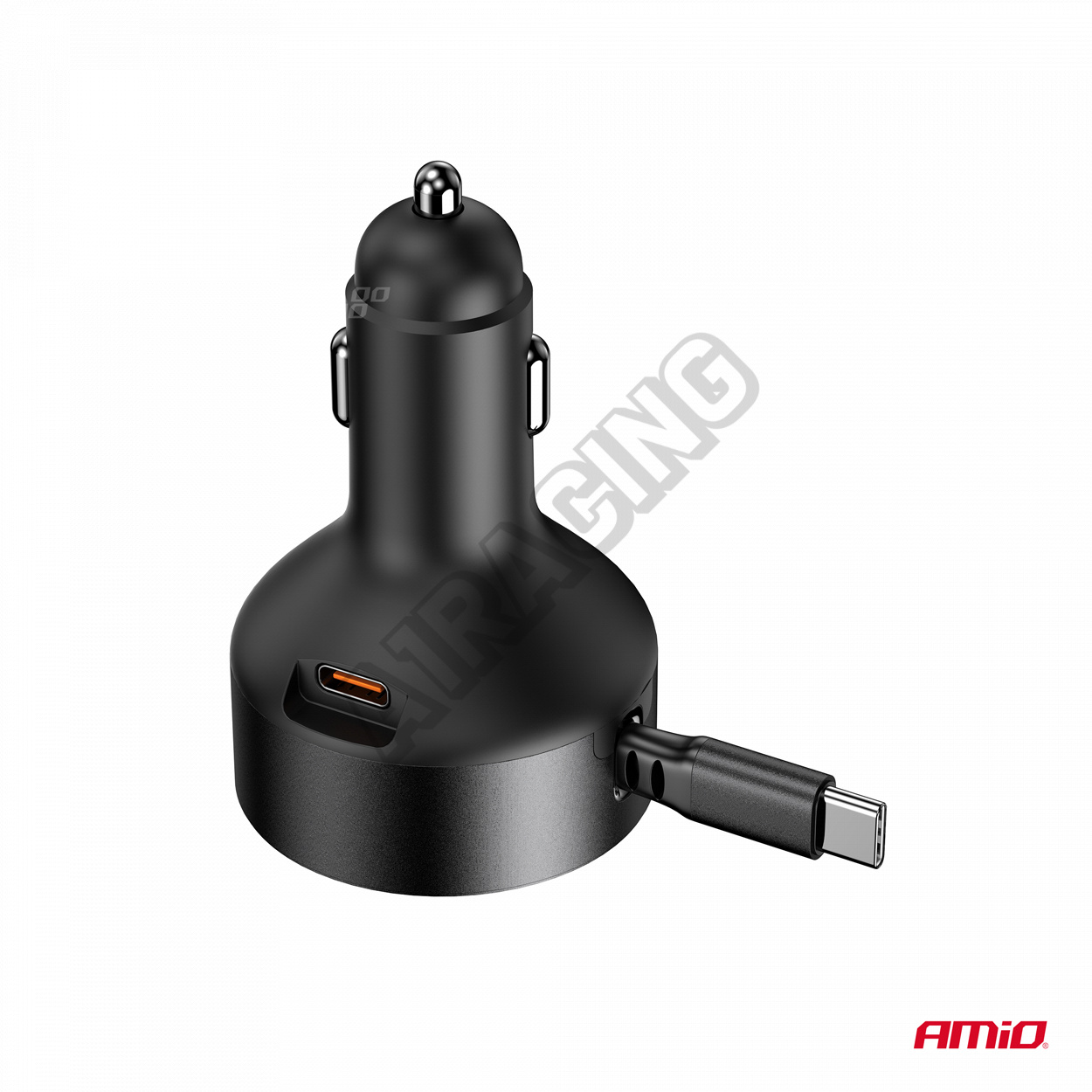 Autonabíječka se zatahovacím kabelem typu C + USB-C 12V 24V 60W AMIO-04368