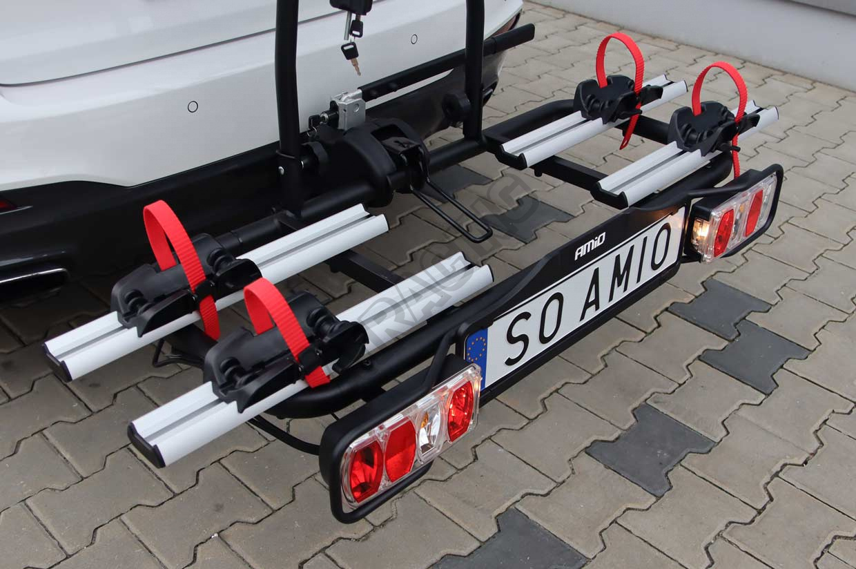 Robustní sklopná platforma montovaná na tažné zařízení pro přepravu jednoho až čtyř jízdních kol.