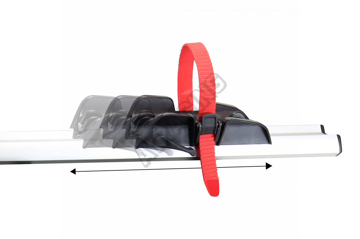 Velmi pohodlný systém montáže kol na nosiči - stačí odpojit úchyty, přetáhnout přes kola, zajistit zámkem s klíčem a hotovo