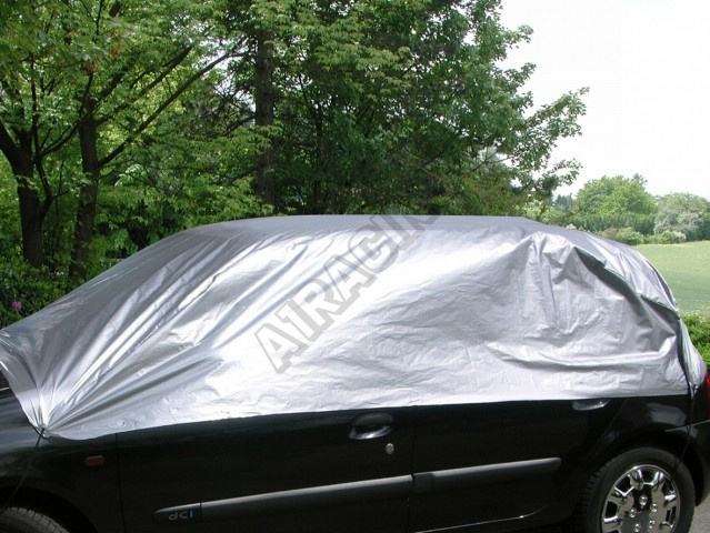 • Použití: pro malá auta • Materiály: recyklovatelná polyethylenová tkanina, voduodpuzující, nepromokavá, odolná proti roztržení, odolná vůči povětrnostním vlivům a teplotě odolná proti teplu a chladu • Velikost (obvod): M = max. 8.00 m • Montáž: upevnění gumovým popruhem a háčky • Balení: v praktické brašně • Barva: stříbrná