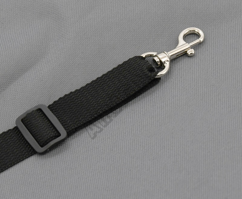 Ochrana je opatřena zipy, umožňující otevření boků, pro pohodlný nástup psa. Ochrana je navíc na bocích opatřena popruhem s karabinou pro uchycení obojku.