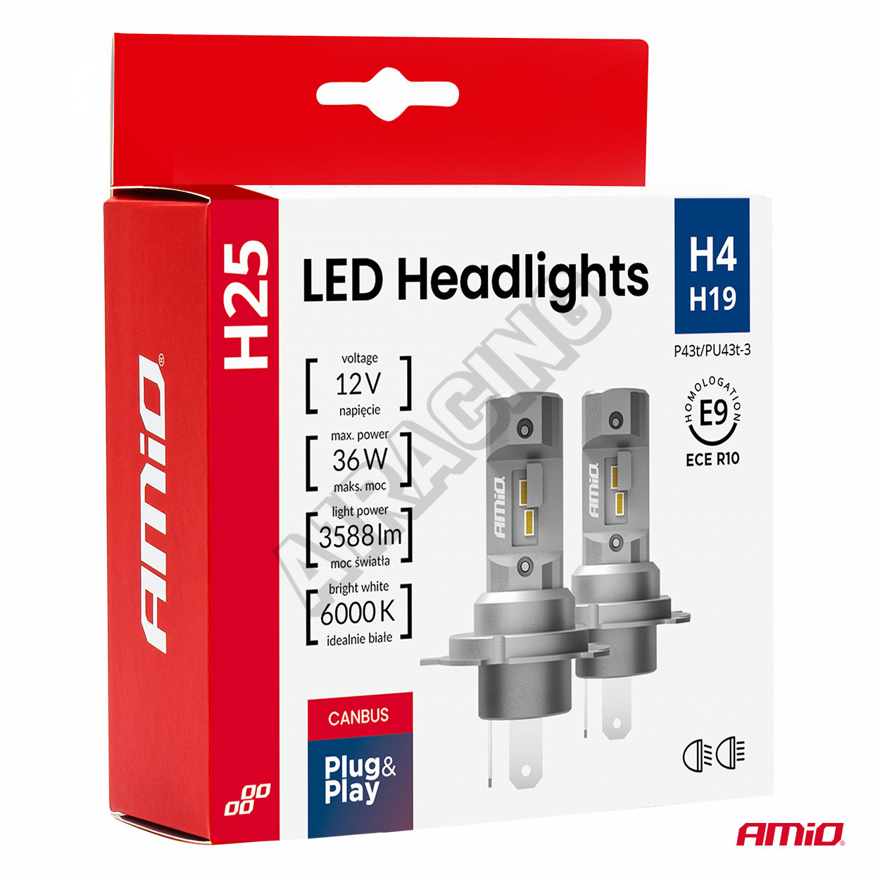 Autožárovky LED série H25 CANBUS H4 H19 12V 36W AMIO-04711
