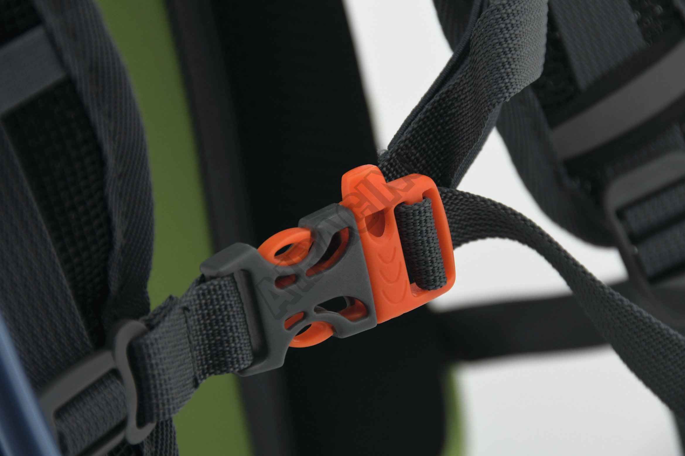 Zadová čast je větraná. Měkké výztuže zajišťují vysokou míru komfortu nošení. Samozřejmostí je zapínání přez hruď, které je klipsové a je doplněné o integrovanou píšťalku. Další předností batohu je i ovládání zipů, které je možné i v cyklistických rukavicích.
