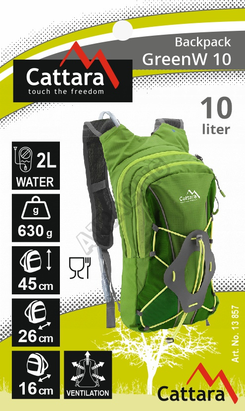 Praktický batoh kompaktních rozměrů s pitným vakem GREEN, ideální společník pro sportovní využití.