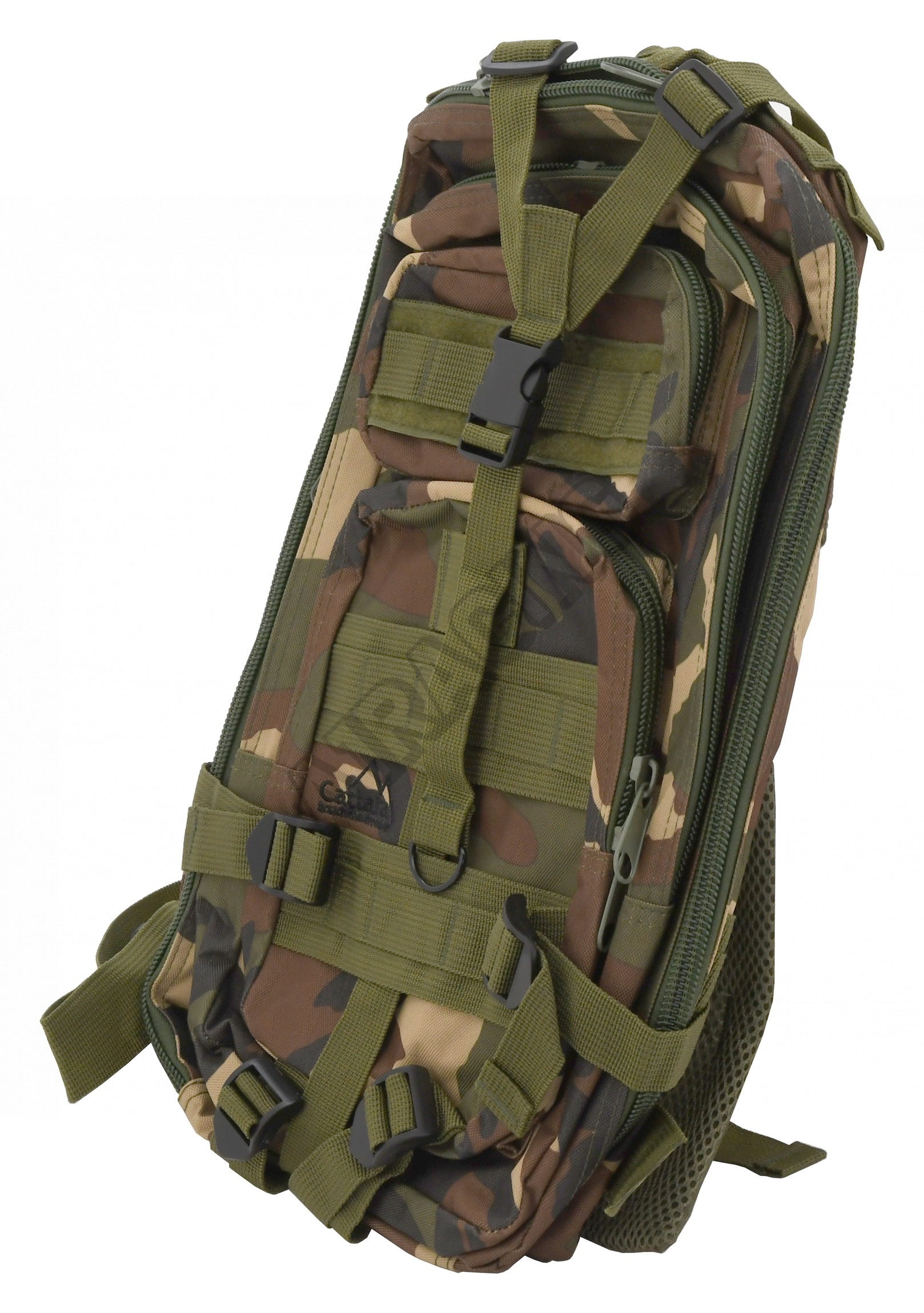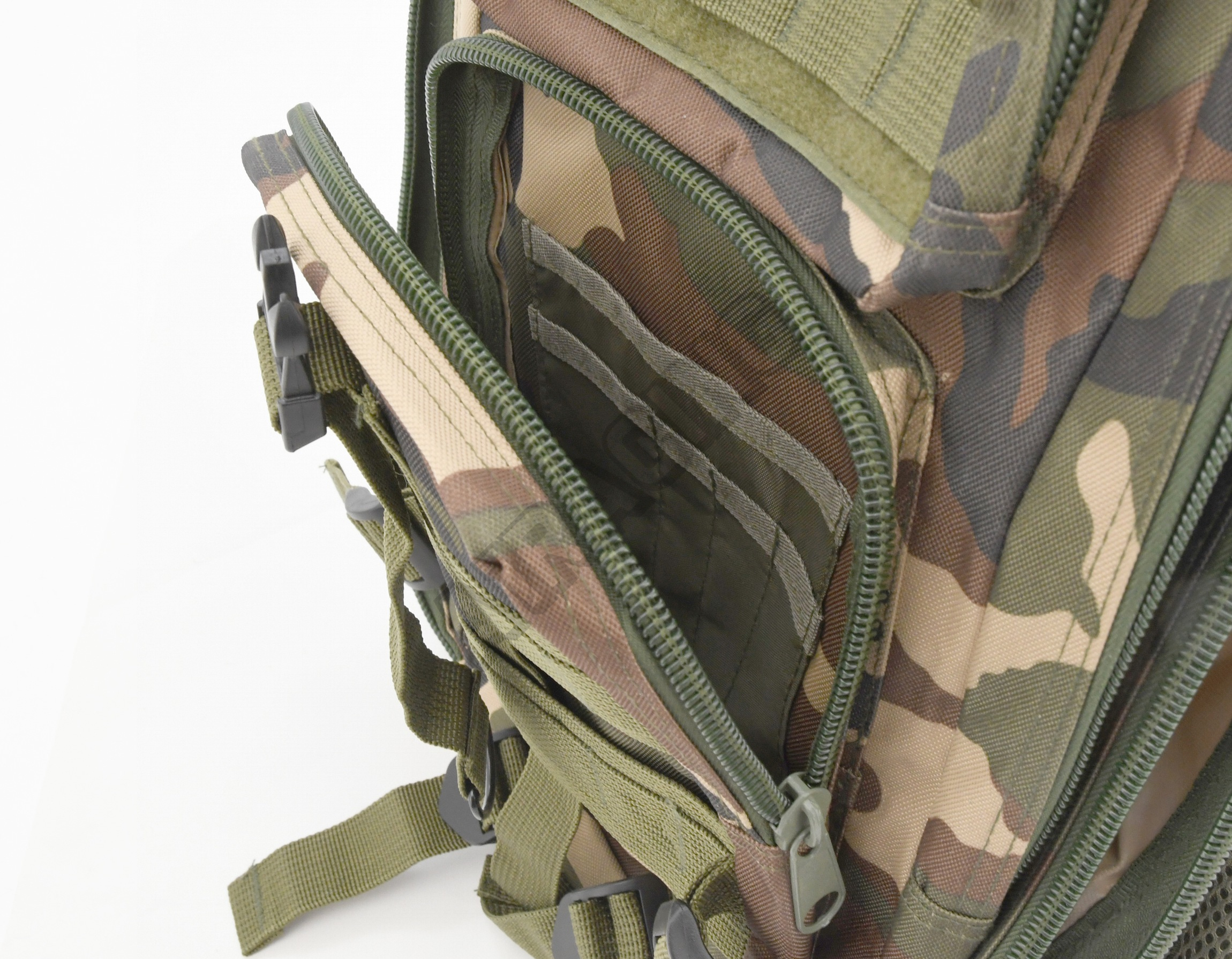 Z čelní strany a na bocích je opatřen Molle systémem pro uchycení dalšího vybavení. Kapsy jsou osazeny bytelným dvoucestným zipem. Vnitřní kapsy a sítěná kapsa jsou doplněné o poutka pro bezpečné nošení drobných předmětů. Jedna z vnitřních kapes je opatřena klasickým zipem a zadní větraná kapsa je opatřena suchým zipem.