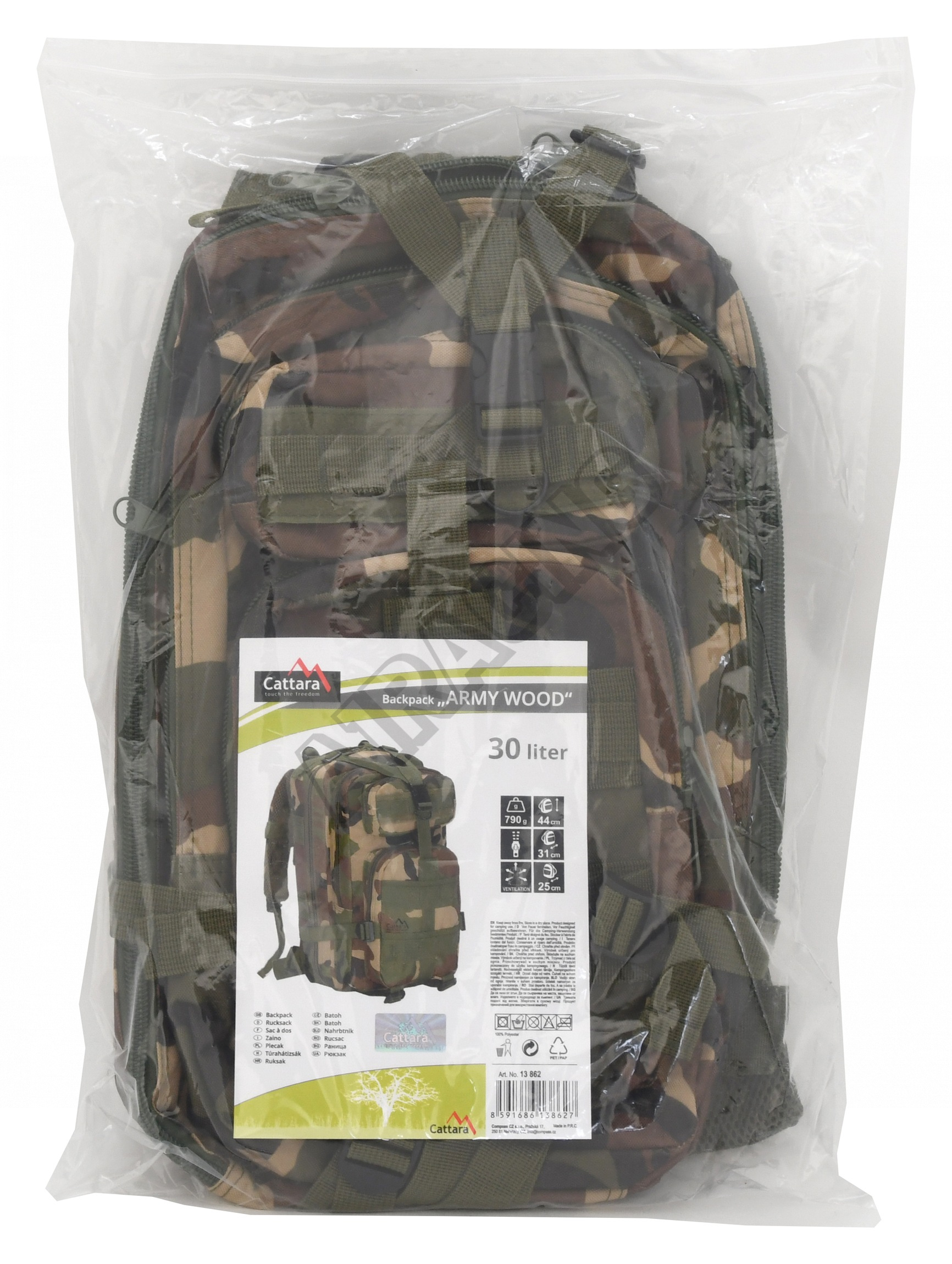 Zhotovení ze 100% polyesteru s voděodolnou PVC vrstvou z vnitřní strany. Batoh má rozměry 31 x 44 x 25 cm a nabízí objemný prostor až pro 30L předmětů.