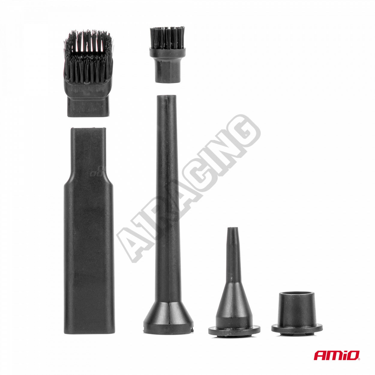 - Precizní nástavec pro vyfukování: Skvělý pro odstraňování nečistot z těžko přístupných míst, jako jsou mezery mezi sedadly, ventilace nebo místa kolem řadicí páky. Úzká tryska umožňuje přesné nasměrování proudu vzduchu, což umožňuje efektivní vyfukování nečistot.