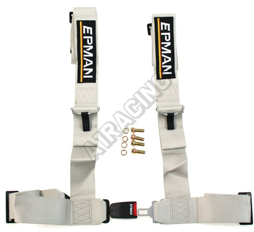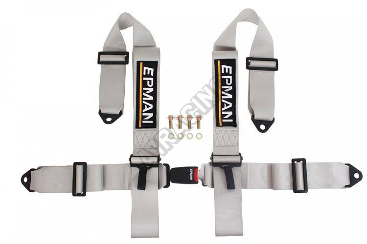 Bezpečnostní pás 4-bodový Epman šedý 75 mm 4 bod uchycení. Jadnoduché centrální zamykání. Šířka pás