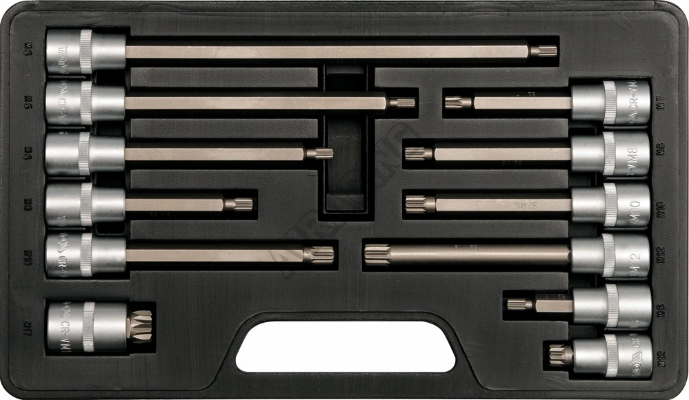 Sada kvalitních zástrčných prodloužených klíčů XZN s bitem pevně spojeným s hlavicí se čtyřhranem 1/2".