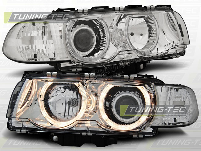 BMW E38 1998-01 PŘEDNÍ ČÍRÁ SVĚTLA H7/H7 ANGEL EYES CHROME