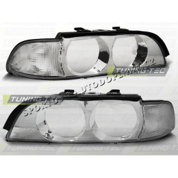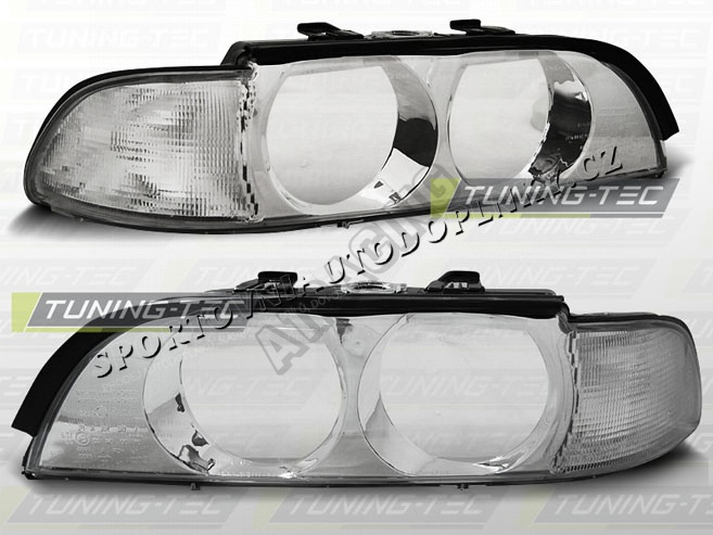 BMW E39 95-00 KOMPLETNÍ KRYTY SVĚTEL CHROM - BEZ ČOČEK (LPBM13) - Světla maji homologaci pro běž