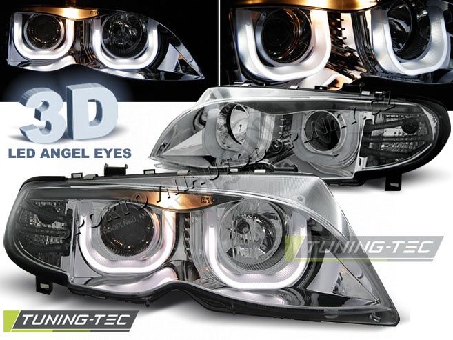 BMW E46 09.2001-03.2005 S/T PŘEDNÍ ČÍRÁ SVĚTLA 3D ANGEL EYES CHROME