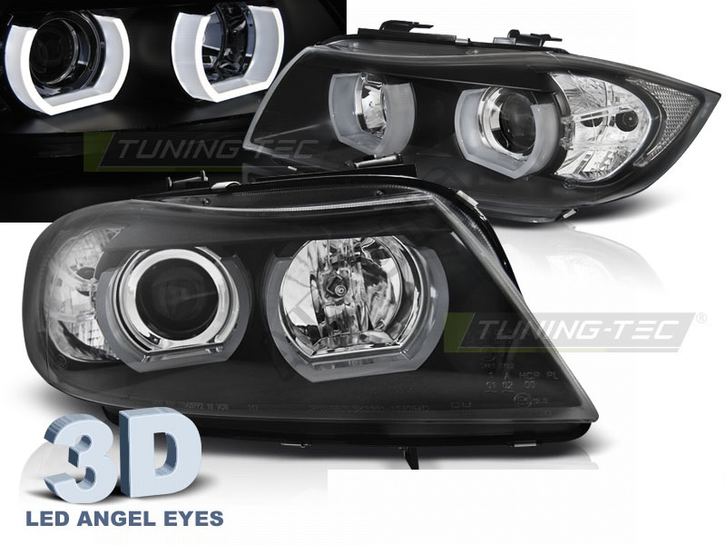 BMW E90/E91 03.2005-08.2008 přední čirá světla 3D U-Type black (LPBMI4) Světla mají homologaci pro